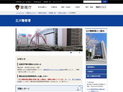 警察署を[エリア:立川市(東京都)]で検索した結果、4件の警察署が見つかりました。検索結果をクチコミ評価の高い順で1~4位を表示します。